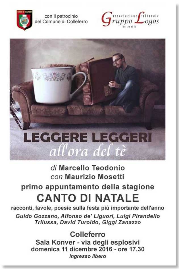 Colleferro. Presso l’ex Sala Konver Domenica 11 Dicembre va in scena il “Canto di Natale”, primo incontro del ciclo “Leggere leggeri all’ora del tè” [Video]