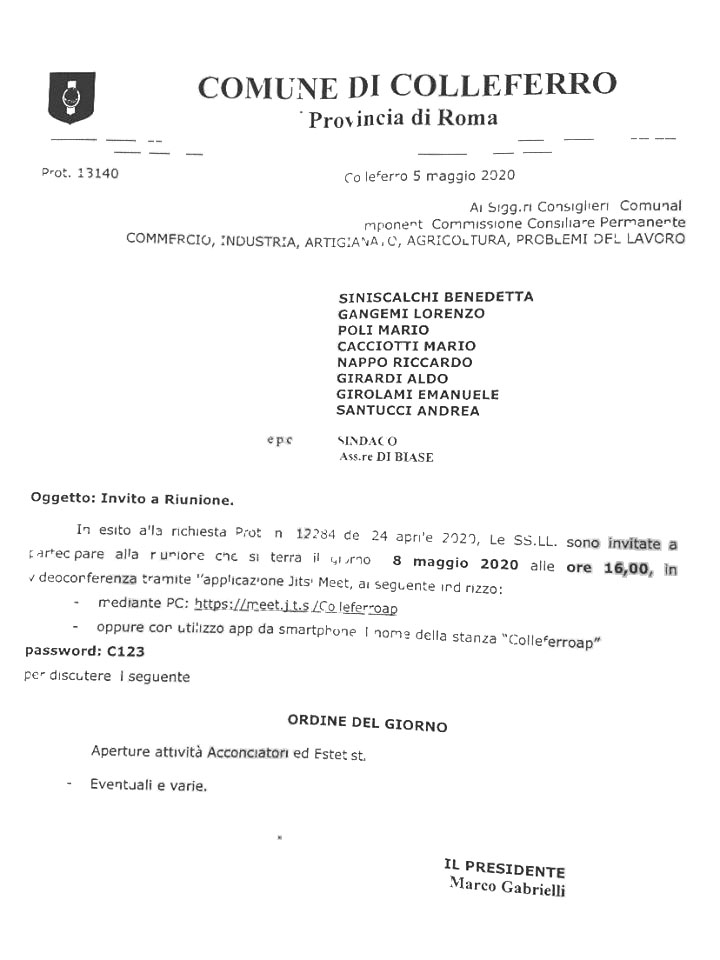 Colleferro. Riapertura delle attività di “Cura della persona”. Venerdì 8 Maggio gli operatori invitati a partecipare in videoconferenza ad una apposita Commissione consiliare