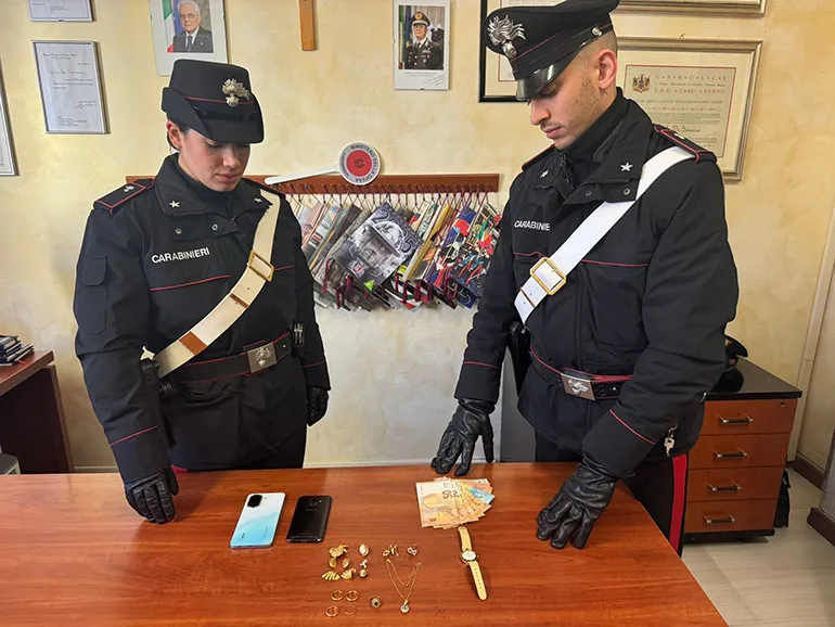 La perquisizione personale ha permesso il ritrovamento di numerosi gioielli in oro, denaro contante e due telefoni cellulari che sono stati sequestrati.