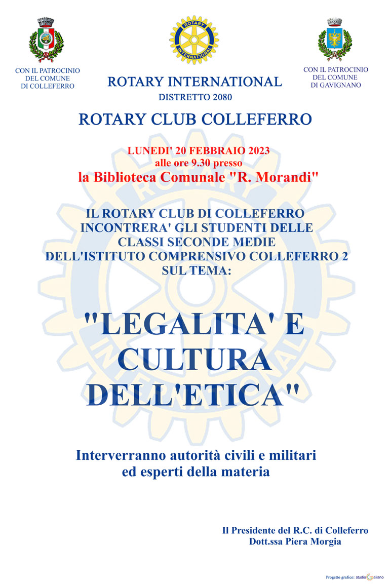 COLLEFERRO – Lunedì 20 Febbraio, alle ore 9,30, presso la Biblioteca Comunale “R. Morandi” il Rotary Club di Colleferro incontrerà gli studenti delle classi seconde medie dell’Istituto Comprensivo Colleferro 2.