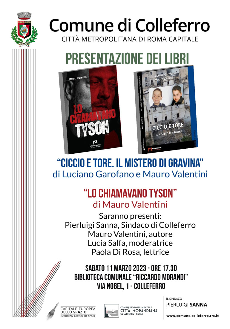COLLEFERRO – Sabato 11 Marzo alle ore 17.30, presso la Biblioteca Comunale R. Morandi, verranno presentati due libri del giornalista e scrittore Mauro Valentini.