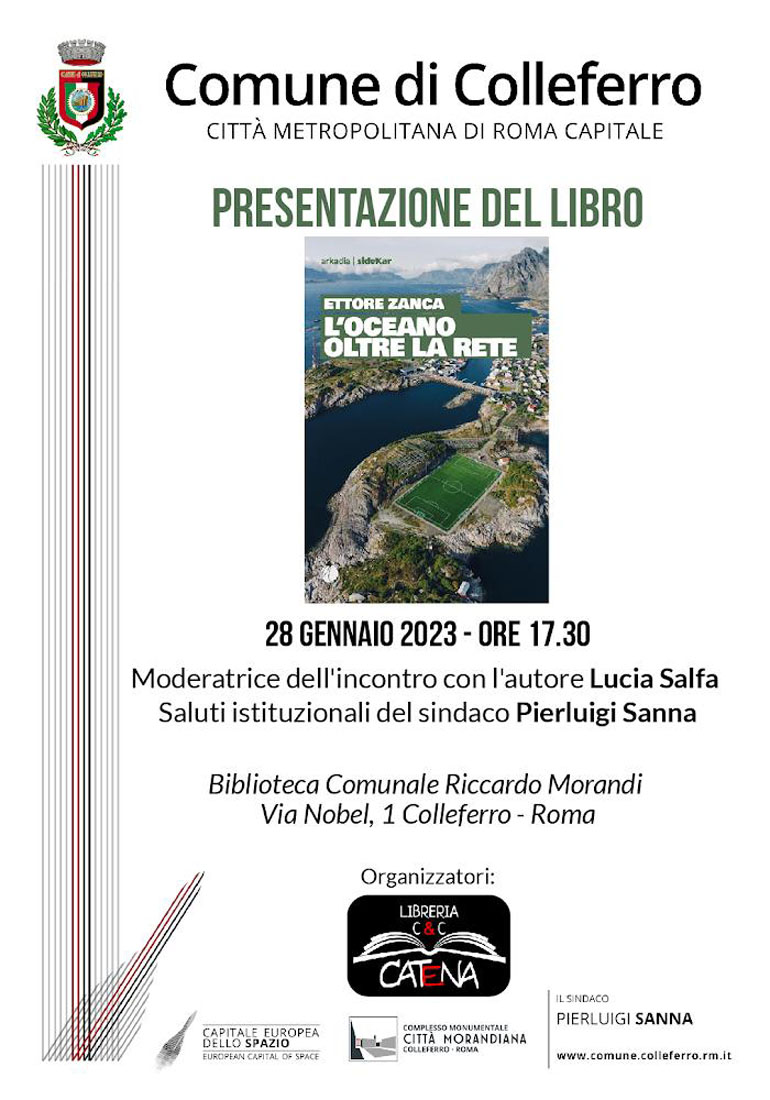 COLLEFERRO – Sabato 28 Gennaio alle ore 17.30, presso la Biblioteca Comunale R. Morandi, Ettore Zanca presenterà il suo ultimo libro, “L’Oceano oltre la rete”.