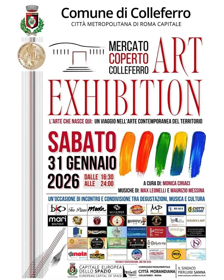 Colleferro. Sabato 31 Gennaio al Mercato Coperto. Appuntamento con Arte, Degustazioni, Musica e Cultura con “Art Exhibition” a cura di Monica Ciriaci