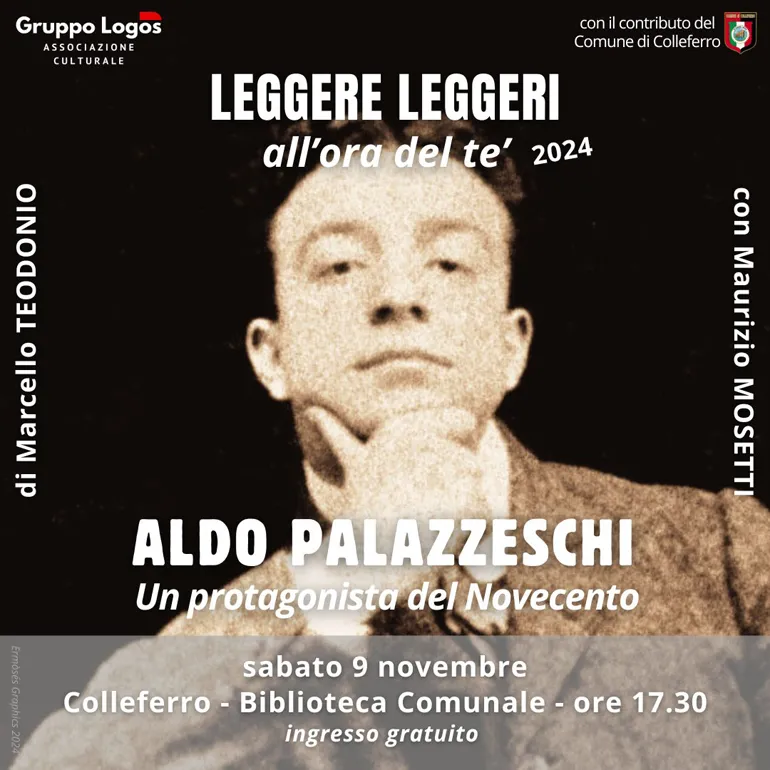 COLLEFERRO – Sabato 9 Novembre alle ore 17.30 nella Biblioteca Comunale “Riccardo Morandi” va in scena il 3° appuntamento 2024 di “Leggere leggeri all’ora del tè” di Marcello Teodonio con Maurizio Mosetti, a cura dell’Associazione Culturale Gruppo Logos e con il contributo del Comune di Colleferro.