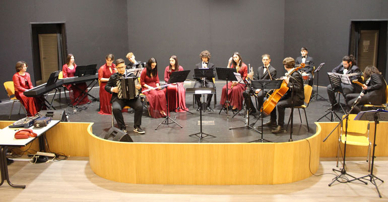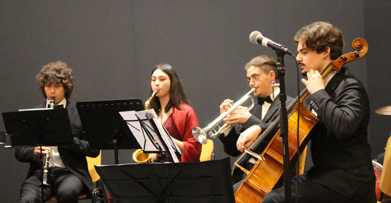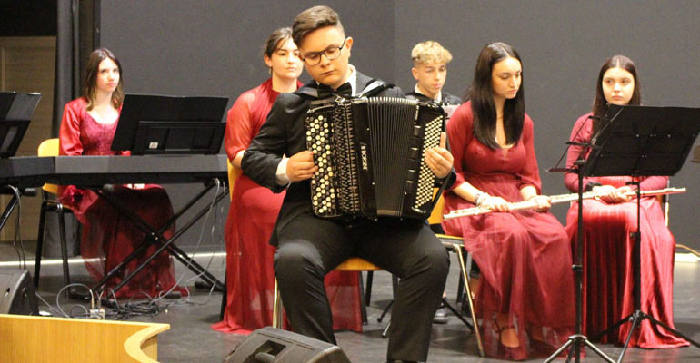 Hanno fatto seguito i giovani allievi del Liceo Musicale, diretti dal M° Tonino Ciammaruconi con vari brani ed una splendida interpretazione di “Life is beautiful” (La vita è bella).