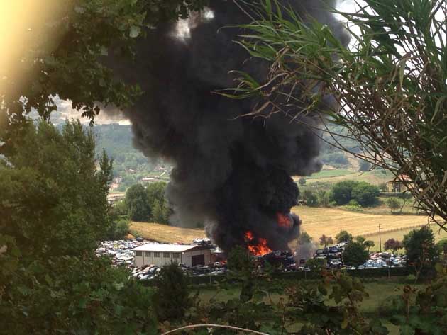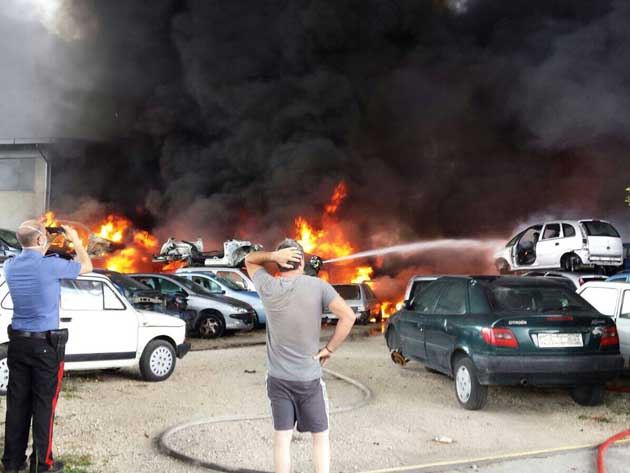 L’officina di autodemolizioni dei Fratelli Colagiacomo, ed il relativo parco carcasse, sono andati distrutti per circa un 50%, ma ieri la paura era che il rogo si estendesse a tutta l’area ed ai terreni adiacenti. L’intervento di dieci squadre di Vigili del Fuoco e di mezzi anche privati, (Lazio Ambiente, Testani, …) è stato provvidenziale ed efficace.