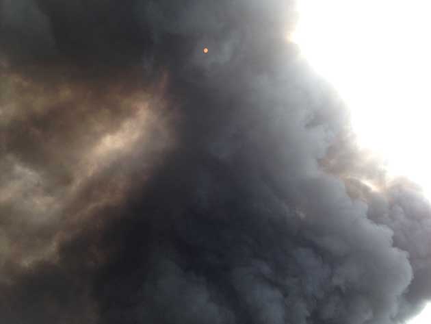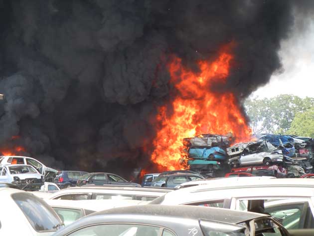 Nella notte il vento ha spazzato via il fumo prodotto dalla combustione degli olii, degli pneumatici e degli interni plastici delle auto andate in fiamme…