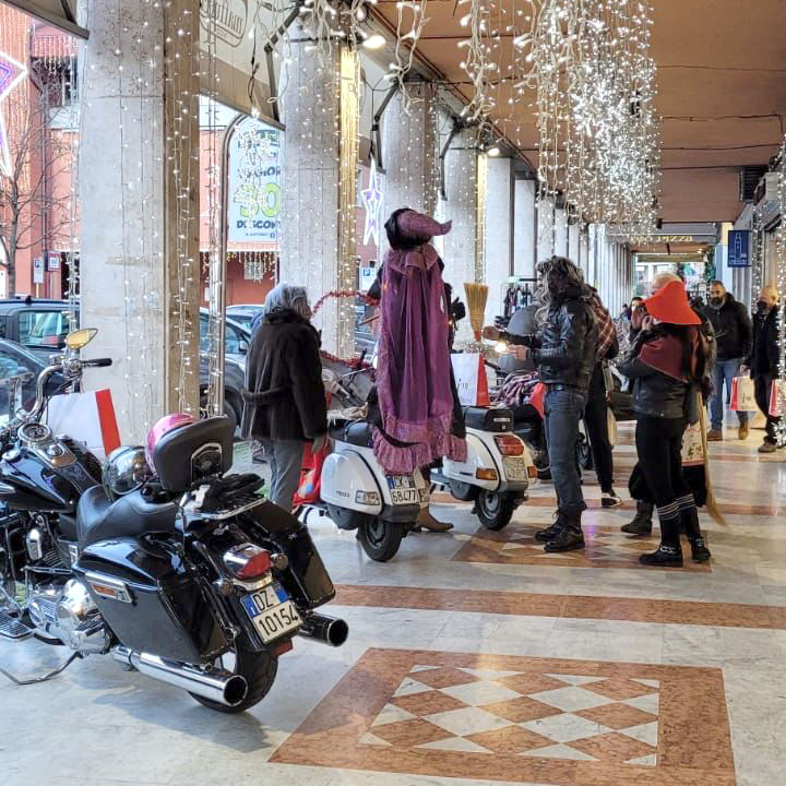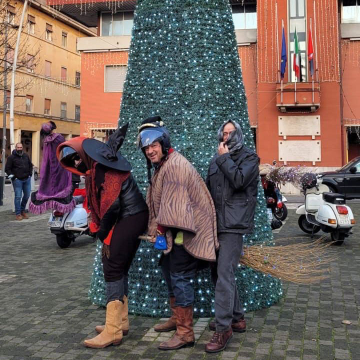 Senza creare assembramenti e senza violare nessuna normativa, un gruppo ristretto di amici, i soliti amici che prima di Natale si erano travestiti da Babbo Natale, hanno indossato abiti e scope, sono saliti in sella alle loro moto e hanno sfrecciato a suon di clacson per le vie di Colleferro durante tutto il giorno e, passando da quartiere a quartiere, laddove è stato possibile, hanno lasciato qualche dolcetto e qualche caramella.