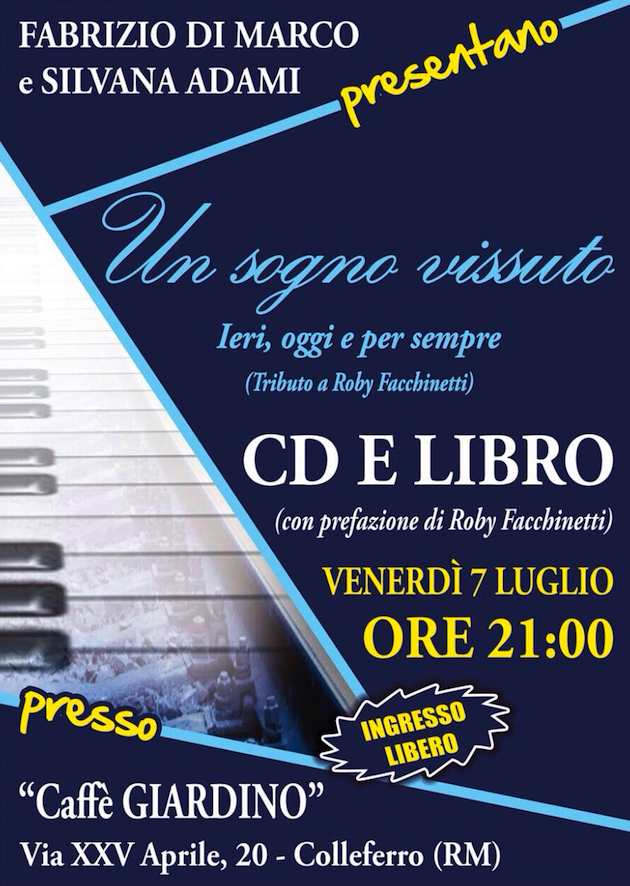 COLLEFERRO (RM) – Venerdì 7 Luglio, a partire dalle ore 21, presso il caffè Giardino di Colleferro, Fabrizio Di Marco e Silvana Adami, presenteranno “Un sogno vissuto – Ieri, oggi e per sempre” (Tributo a Roby Facchinetti).