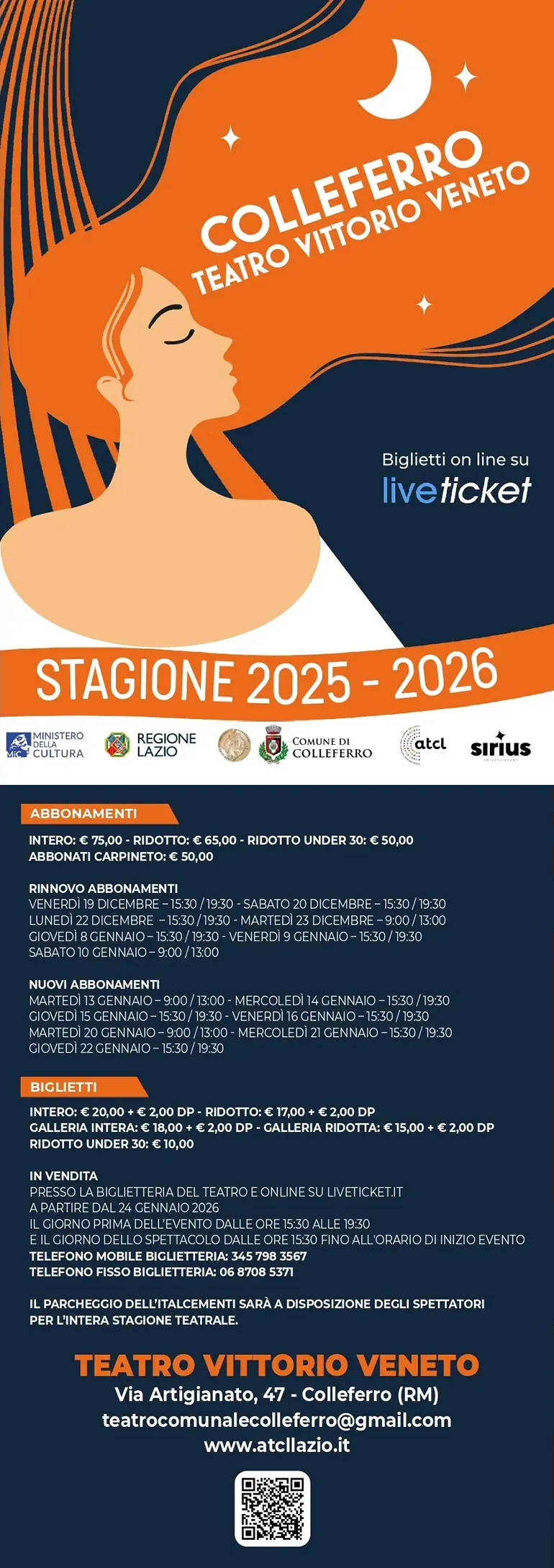 COLLEFERRO – È ormai in fase avanzata la campagna abbonamenti alla Stagione Teatrale 2025/26 del “Vittorio veneto” presentata dal Comune di Colleferro e Atcl – Circuito Multidisciplinare del Lazio sostenuto da Mic e Regione Lazio, in collaborazione Sirius Entertainment.