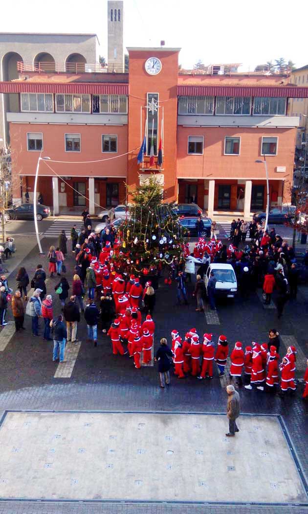 I piccoli Babbo Natale hanno percorso in corteo, accompagnati dalle insegnanti e da alcuni agenti della Polizia Locale, le strade della città partendo da Largo San Francesco (Posta centrale) fino a Piazza Italia, passando per la Biblioteca comunale dove hanno lasciato i loro messaggi di speranza sotto forma di biglietti augurali e dove hanno incontrato gli alunni della Scuola Secondaria di 1° grado “Mazzini”, che nel frattempo avevano già fatto il loro passaggio in Piazza.