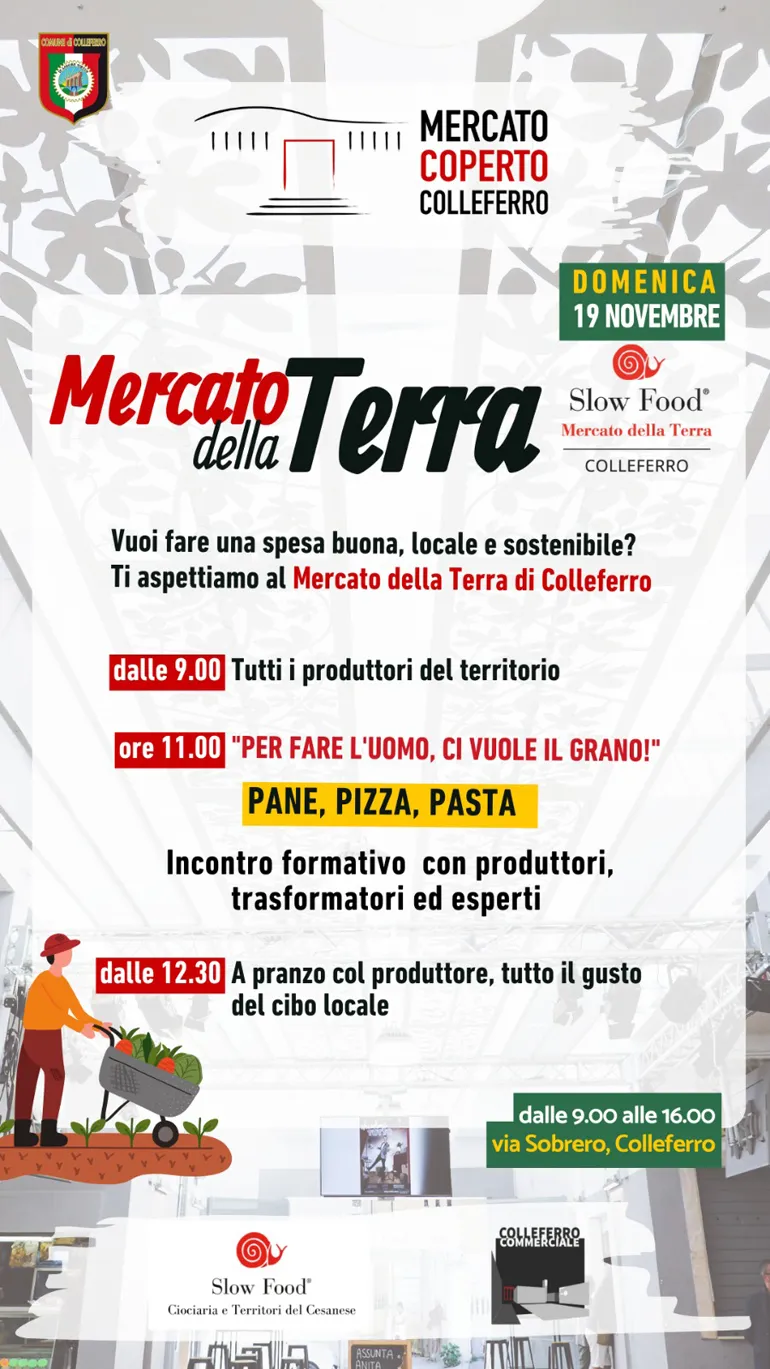 Appuntamento a Domenica 19 Novembre al Mercato coperto per il Mercato della Terra di Colleferro Comunità Slow Food.