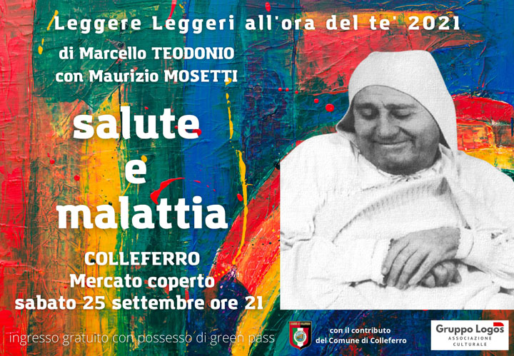 Terzo appuntamento di “Leggere leggeri all’ora del tè”, Salute e Malattia, Sabato 25 Settembre 2021, ore 21, Mercato Coperto, Via Sobrero, Colleferro, Roma.