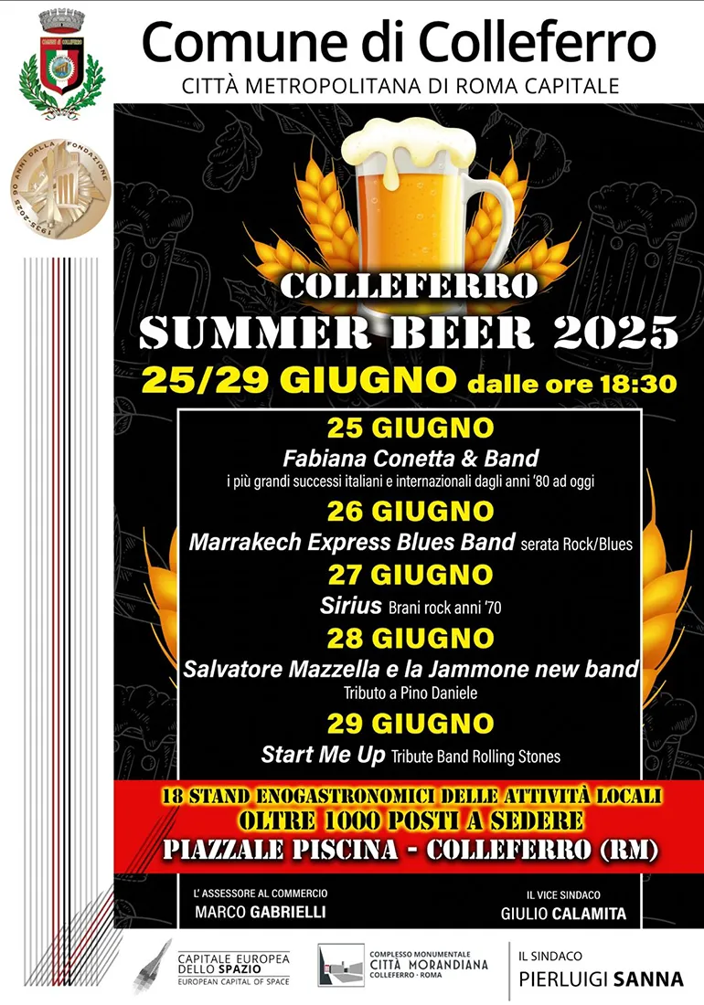 Colleferro. Tutto pronto per la “Summer Beer 2025” in programma da Mercoledì 25 a Domenica 29 Giugno