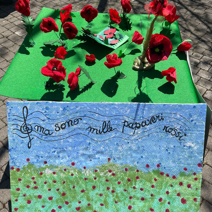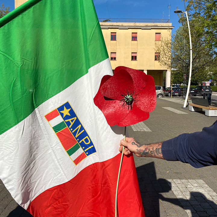 Così per stare comunque insieme, anche se distanti, abbiamo pensato, di raccogliere papaveri rossi, il fiore del partigiano, per installarli a Piazza Italia.