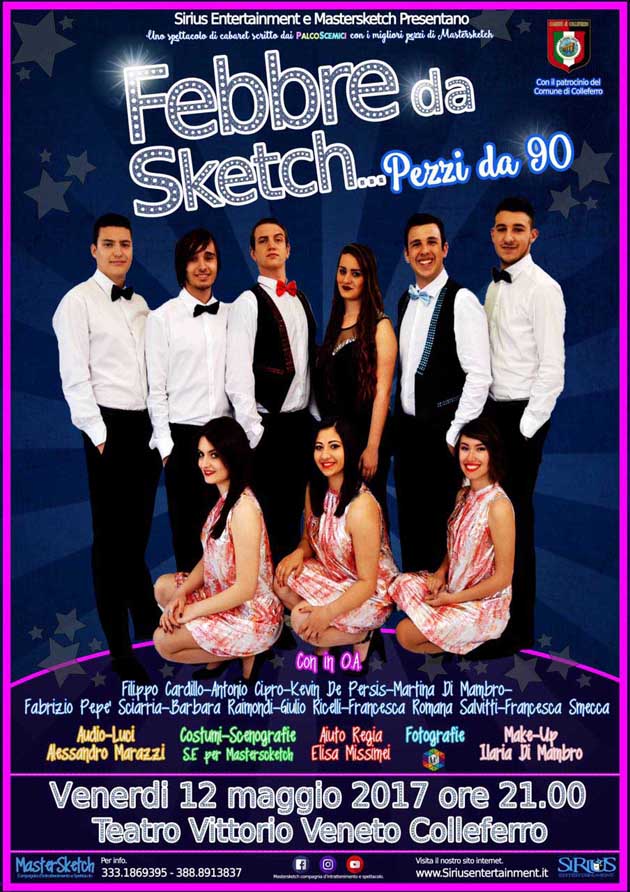 Colleferro. Venerdì 12 Maggio alle 21 al “Vittorio Veneto” torna in scena la compagnia di Mastersketch con “Febbre da Sketch … pezzi da 90!”