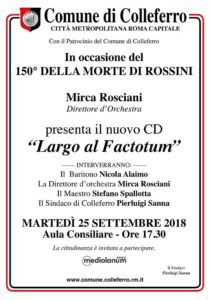 Colleferro. Verrà presentato Martedì 25 Settembre nell’Aula consiliare il nuovo cd live di Mirca Rosciani dal titolo “Largo al Factotum”