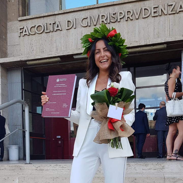COLLEFERRO – Nella mattinata di oggi, 15 Luglio, Francesca Bruni si è brillantemente laureata presso la Facoltà di Giurisprudenza dell’Università degli Studi ‘La Sapienza’ di Roma, concludendo con successo il suo Corso di Laurea Magistrale.