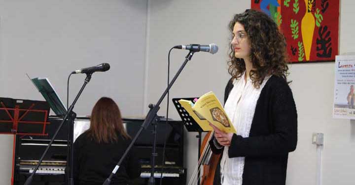 Dopo i saluti del Dirigente Scolastico Prof. Antonio Sapone, sono state declamate, dalla bravissima Giulia Cenci, le poesie “Una donna”, con l’accompagnamento al piano di Diletta Iannucci, “Sopra una partenza senza ritorno”, al pianoforte Vera Miozzi, e “Nostalgia”, al violino Giacomo Binaco.