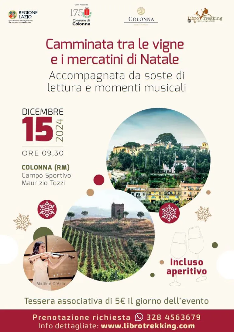 Colonna. Camminata tra le vigne e i mercatini di natale a cura di LibroTrekking. Domenica 15 Dicembre dalle ore 9,30