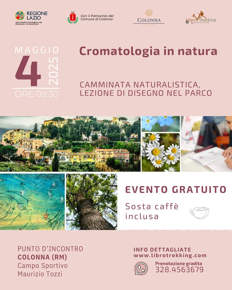 Non prendete impegni allora per domenica prossima 4 Maggio. A Colonna, nei Castelli Romani, vi aspetta un appuntamento gratuito ispirato all’Arte e alla Cromatologia, fra natura, passeggiata, disegno e piccole “chicche” sul linguaggio dei colori.
