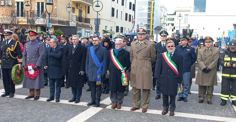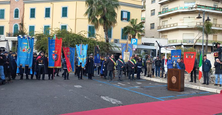Ad Anzio, alla presenza delle Autorità civili e religiose, lo schieramento militare, dei gonfaloni della Regione Lazio, della Città Metropolitana di Roma, dei Comuni di Anzio e Nettuno e tutti i Labari delle Associazioni combattentistiche d’Arma, è stata deposta una corona al Monumento dei caduti.