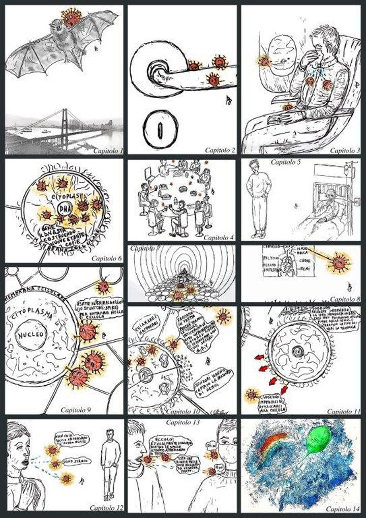 Abbiamo detto al Dott. Ragusa che questo suo testo, da noi fatto illustrare dall’artista, scultrice, pittrice, musicista per gli ammalati ed attrice, Antonella Brindisi, dovrebbe avere un seguito audiovisivo: essere rappresentato online, tramite le piattaforme di videoconferenza “Zoom, Google Meet ed altre” perché gli spettatori si rendessero conto di che cosa sia veramente questa malattia Covid 19.