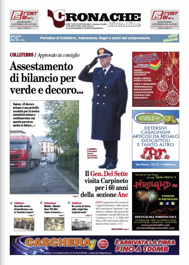 È in distribuzione gratuita il n. 1368 di Cronache Cittadine • Il Giornale di Novembre/Dicembre 2016.