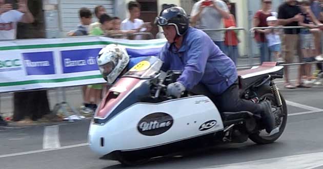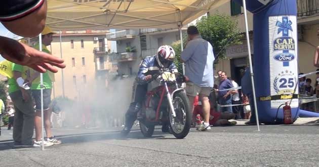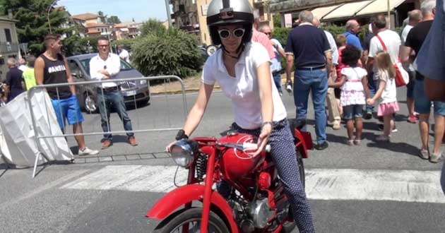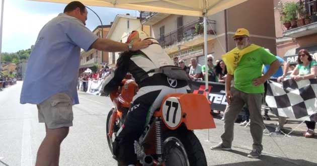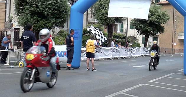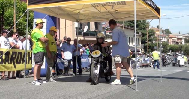 A titolo di cronaca, anche il Sindaco è giunto sul posto con un vecchio motociclo (poco più su a destra), un Moto Guzzi Cardellino del 1960 con motore da 73cc, con il quale la giovane moglie Nicol ha partecipato alla terza manche (vedi tra le foto in apertura).