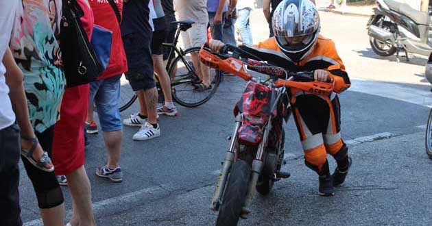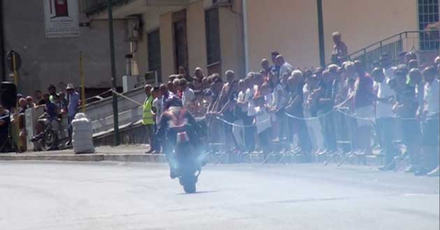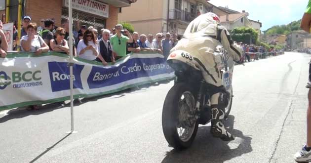 Poco dopo le 10 il rombo delle moto ha iniziato a levarsi sempre più alto. Oltre agli iscritti alla gara – ancora in trasferimento da Piazzale Europa alla linea di partenza su Via Traiana – i “motori urlanti” erano anche quelli degli appassionati giunti sul posto a bordo della propria due ruote, pronti alla manche “0”, quella che ha visto centinaia di due ruote percorrere il tratto viario che, di lì a poco, avrebbe visto sfrecciare le moto iscritte ufficialmente alla cronoscalata.