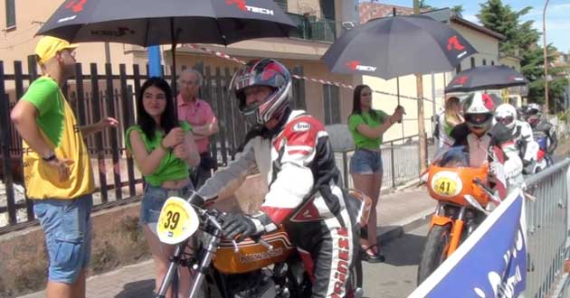 La domenica è iniziata ben presto, alle 7 del mattino – sempre in Piazzale Europa -, con l’apertura del paddock, della Segreteria di gara e delle verifiche tecnico/amministrative delle moto e dei piloti partecipanti alla Cronoscalata. Quest’anno gli iscritti sono stati 53, compreso i sidecars.