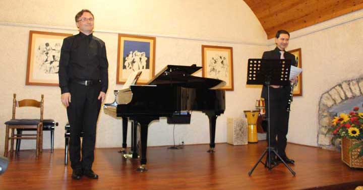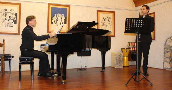 Antonello Timpani al clarinetto e Danius Kepezinskas al pianoforte, hanno eseguito la Suonata in Re di Nino Rota in tre tempi: un primo tempo molto romantico, un secondo che o ricorda la musica da film con un’atmosfera misteriosa, ed un terzo di grande virtuosismo;