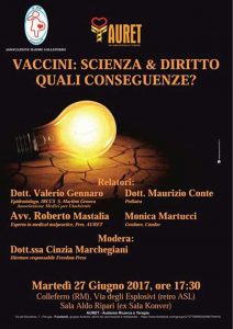 «Lo scorso 27 Giugno si è svolta a Colleferro, presso la ex Sala Konver, la conferenza “Vaccini: Scienza e Diritto. Quali Conseguenze?” organizzata dall’Associazione Mamme Colleferro e da un gruppo di genitori volontari in collaborazione con Auret (Autismo Ricerca e Terapie).