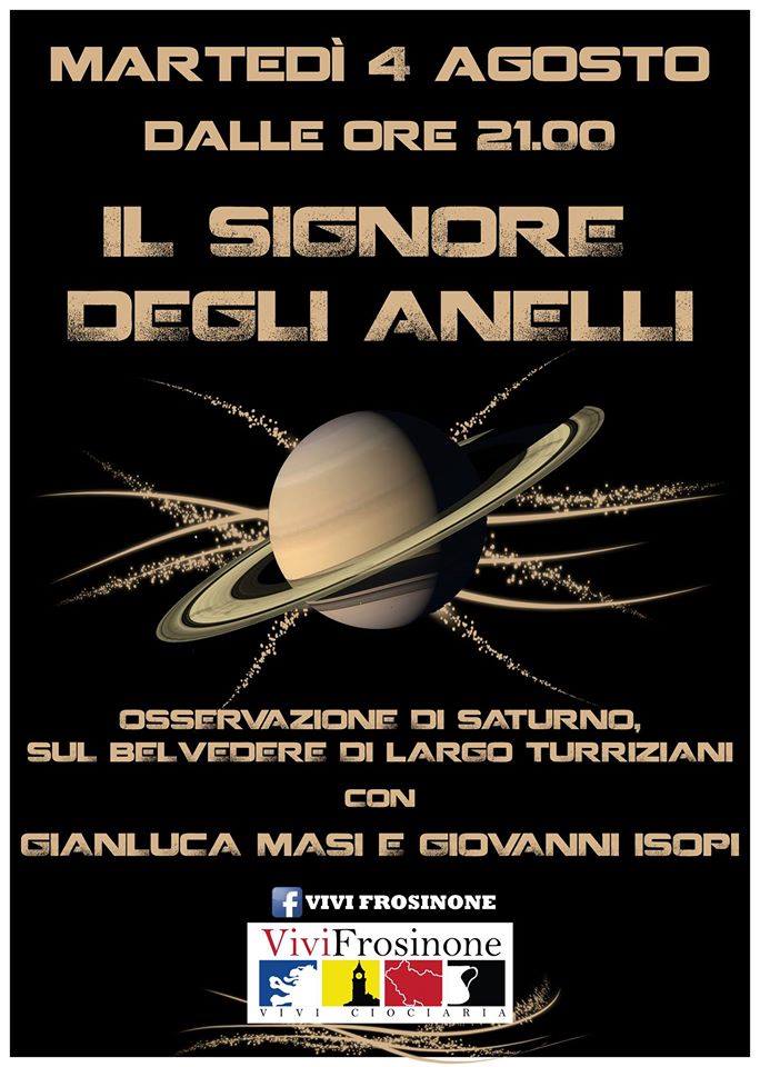 Domani 4 Agosto a Frosinone alta “Il Signore degli Anelli”. Osservazione di Saturno targata “Vivi Frosinone”