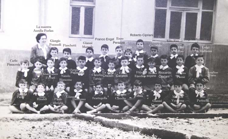 Ed i ricordi, facilitati da una foto dove si ritrovano molti dei suoi compagni, una foto conservata gelosamente tra le cose più care, fanno si che la malattia non receda, ed anzi, si aggravi sempre di più… Ma c’è da dire che la nostalgia, scatenata da tale sindrome, non è vissuta in modo negativo, anzi è sempre utilizzata per ritrovarsi con se stesso, nei momenti tristi della vita e superarli con la consapevolezza di essere stato, di aver vissuto, nel posto più bello del mondo. E poi ci sono sempre quei fugaci passaggi, durante i viaggi, in cui passando davanti al casello dell’autostrada e vedendo la scritta Colleferro non puoi fare a meno di fare una deviazione, entrare in paese e percorrere le strade della tua infanzia che hai come l’impressione di vedere rimpicciolite rispetto al tuo ricordo di bambino. Ed ancora per tentare una cura radicale che possa sostituire la nostalgia con il vivere adesso, utilizzare quella meraviglia di facebook, contattare dopo oltre cinquant’anni uno dei fantasmi della foto ed, a poco a poco, vederli materializzarsi quasi tutti a circondarti per cancellare in un colpo il tempo trascorso dal momento in cui fu scattata quella foto. Certo il tuo cuore è gonfio di tristezza per la mancanza del tuo amico più caro, Roberto, che sempre hai ricordato ogni volta che venivi assalito dal riacutizzarsi della sindrome.