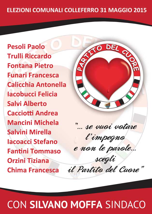 Anche nel caso dell’Associazione mettiamo in campo risorse private per fare “i fatti”, ma l’azione dei consiglieri comunali che gli elettori vorranno scegliere nella lista del Partito del Cuore, sarà assolutamente improntata ai medesimi principi anche in seno alla futura amministrazione comunale. Qualsiasi sia il risultato delle elezioni.