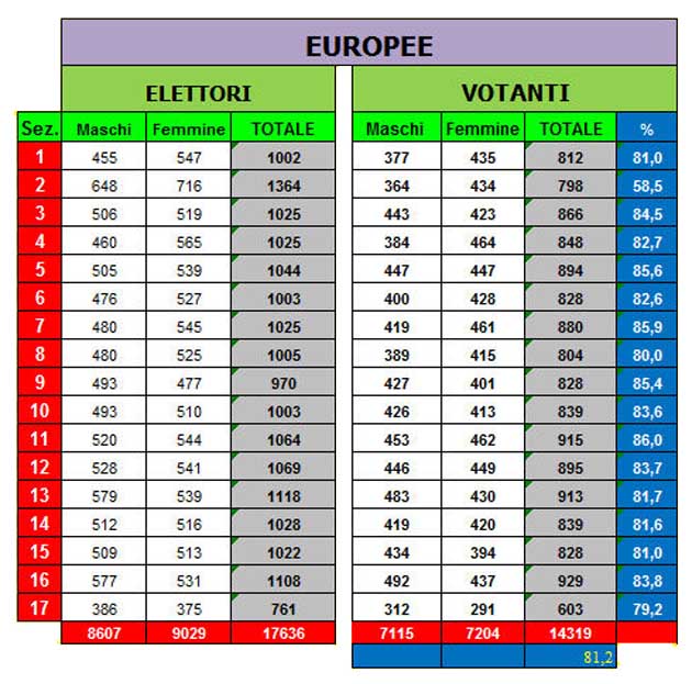 ANAGNI (FR) – Elezioni Europee. Afflusso alle urne definitivo per il Comune di Anagni. La percentuale degli aventi diritto al voto che si sono recati alle urne nei 17 seggi del Comune di Anagni per esprimere il proprio voto per le Elezioni Europee 2014 è stata del 81,2%.