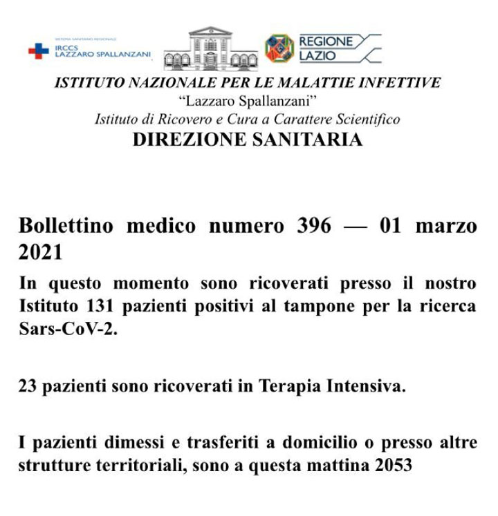 Bollettino medico numero 396 – 1 Marzo 2021