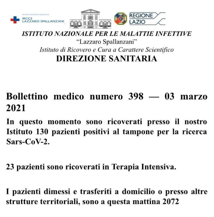 Bollettino medico numero 398 – 3 Marzo 2021