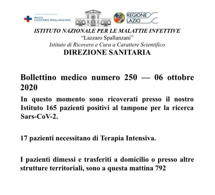 Bollettino medico numero 250 – 6 Ottobre 2020