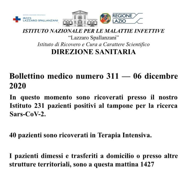 Bollettino medico numero 311 – 6 Dicembre 2020