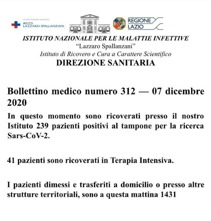 Bollettino medico numero 312 – 7 Dicembre 2020