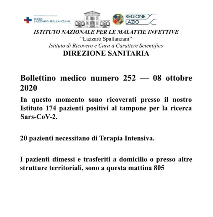 Bollettino medico numero 252 – 8 Ottobre 2020