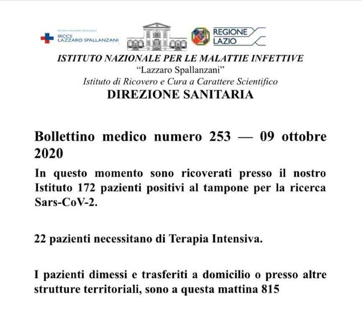 Questo è il Bollettino giornaliero dell’Istituto Nazionale di Malattie Infettive “Lazzaro Spallanzani”.