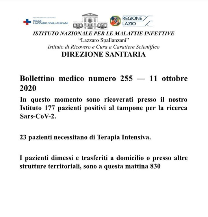 Questo è il Bollettino giornaliero dell’Istituto Nazionale di Malattie Infettive “Lazzaro Spallanzani”.