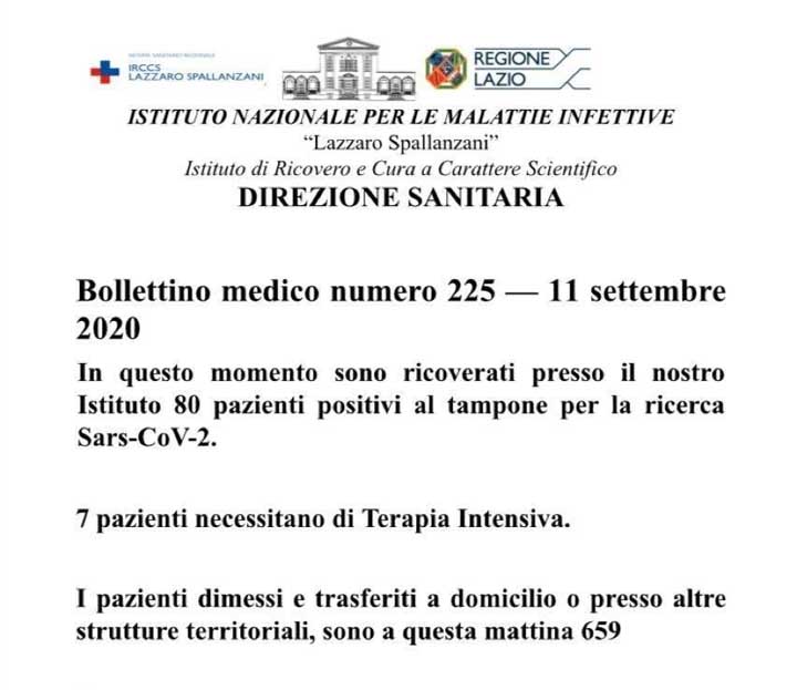 Bollettino medico numero 225 – 11 Settembre 2020