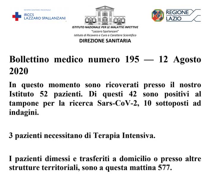 Bollettino medico numero 195 – 12 Agosto 2020