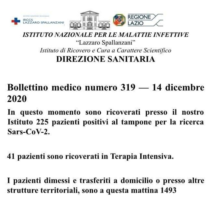 Bollettino medico numero 319 – 14 Dicembre 2020