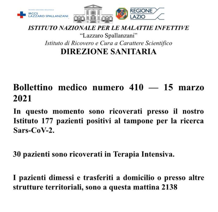 Bollettino medico numero 410 – 15 Marzo 2021
