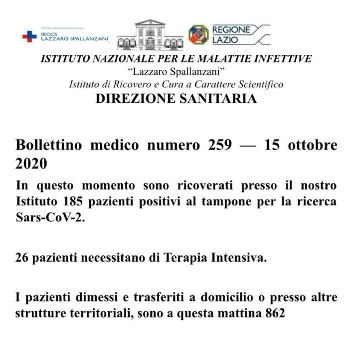 Questo è il Bollettino giornaliero dell’Istituto Nazionale di Malattie Infettive “Lazzaro Spallanzani”.
